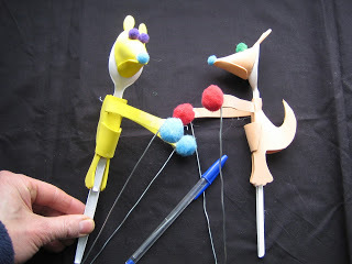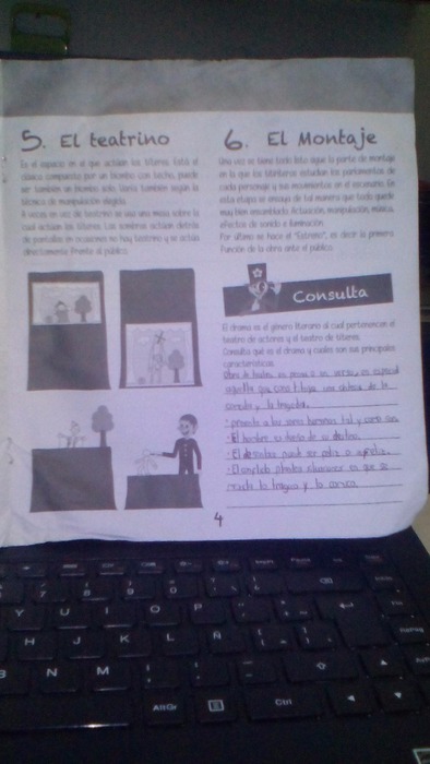 se escoge la tecnica de manipulacion en la que se va a travajar la obra ( guante, sombras, titeres de mesa, animatronics, ETC ) y se frabrican los personajes que apareceran en cuento
